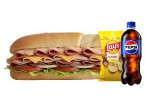 Comes with the Sub and Bag of Lays classic and 20oz Bottled soda